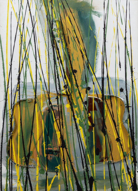 chitarra tagliata e acrilico su tela cm 119x81 5x8 5
