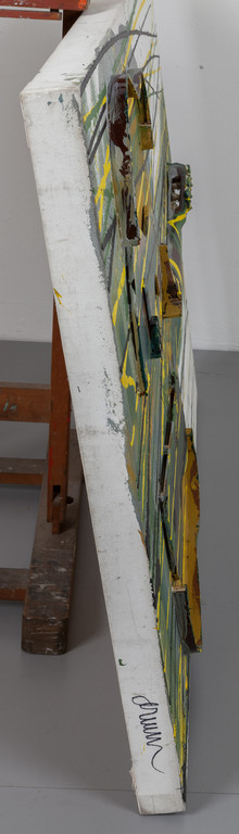 sliced guitar and acrylic on canvas 46 85x32 08x3 34 in