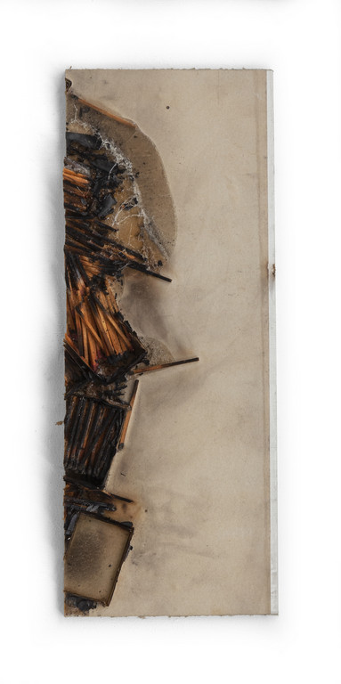 fiammiferi bruciati su cartone su tavola cm 44x22 4x4