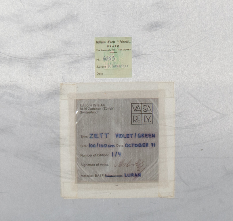 on the reverse: label of di Victor Vasarely Edition Pyra AG (Zurich);