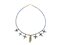 Collana costituita da piccoli vaghi in lapislazzuli di forma approssimativamente biconica e vaghi sferici in corniola con sei pendenti in bronzo a croce ed uno centrale di forma foliata decorato a sbalzo con motivo a puntini