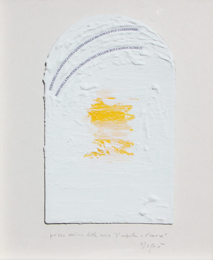 Emilio ISGRO’ Barcellona Pozzo di Gotto 1937 L’artista e l’errore, anni ’90 Tecnica mista su cartoncino cm 24 X 30 Autentica della Galleria Centro Steccata, Parma, su fotografia Titolo, firma ‘Pezzo unico della serie – l’artista e l’errore, Isgrò’ (in basso al centro)