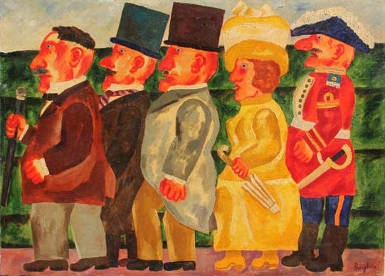 Franz BORGHESE Roma 1941 - Roma 2005 Figure, 1979 Olio su tela cm 50 X 70 Certificato di autenticità della Galleria Il Gianicolo, Perugia Firma ‘Borghese’ (in basso a destra) Firma ‘Franz Borghese’; etichetta Editrice Diffusione Arte (al retro)