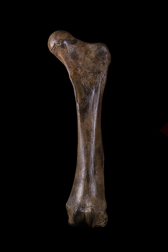 Femore di mammuth in ottimo stato di conservazione. I mammuth sono animali iconici simbolo dell’estinzione climatica e dell’Era Glaciale. Hanno abitato la terra dal Pliocene (circa 5 milioni di anni fa) fino all’Olocene (circa 4.000 anni fa) e ne esistevano diverse specie in Africa, Europa, Asia e Nord America. Sono membri della famiglia Elephantidae, che comprende anche gli elefanti moderni e i loro antenati. La parola “mammuth” venne usata per la prima volta in Europa nel XVII secolo per riferisi alle zanne di “maimanto” ritrovate in Siberia. “Maimanto” era infatti il nome dato alle grandi zanne di animali ritrovate in Siberia nel XVII secolo.