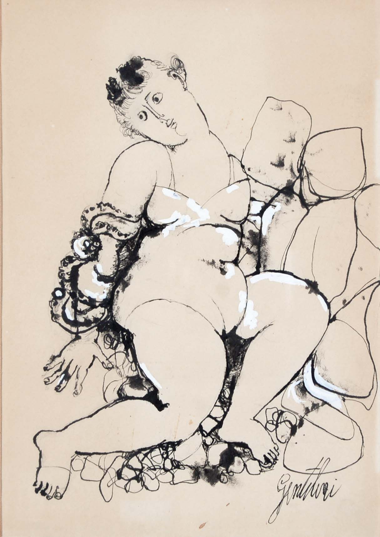 GENTILINI FRANCO Faenza 1909 - Roma 1981 Bagnante 1958 china e biacca su...