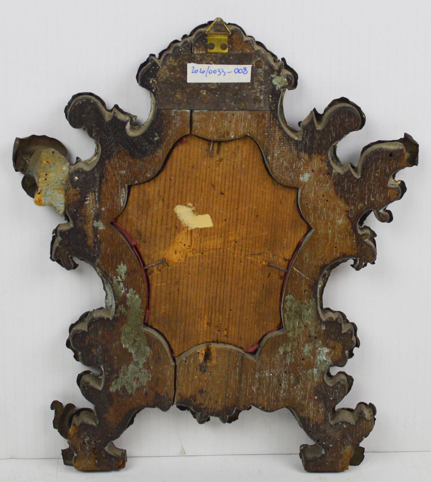 coppia di miniature entro cartagloria, cm 4x3 e diametro cm 6, cartagloria cm 31x26,5x2