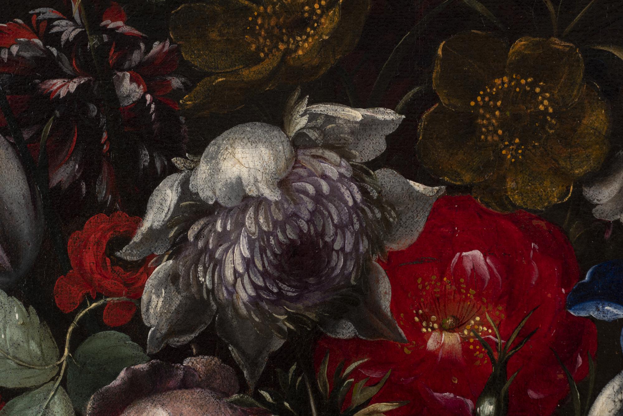 Giovanni Stanchi NATURA MORTA. VASO DI FIORI ISTORIATO CON PAN E SIRINGA olio...