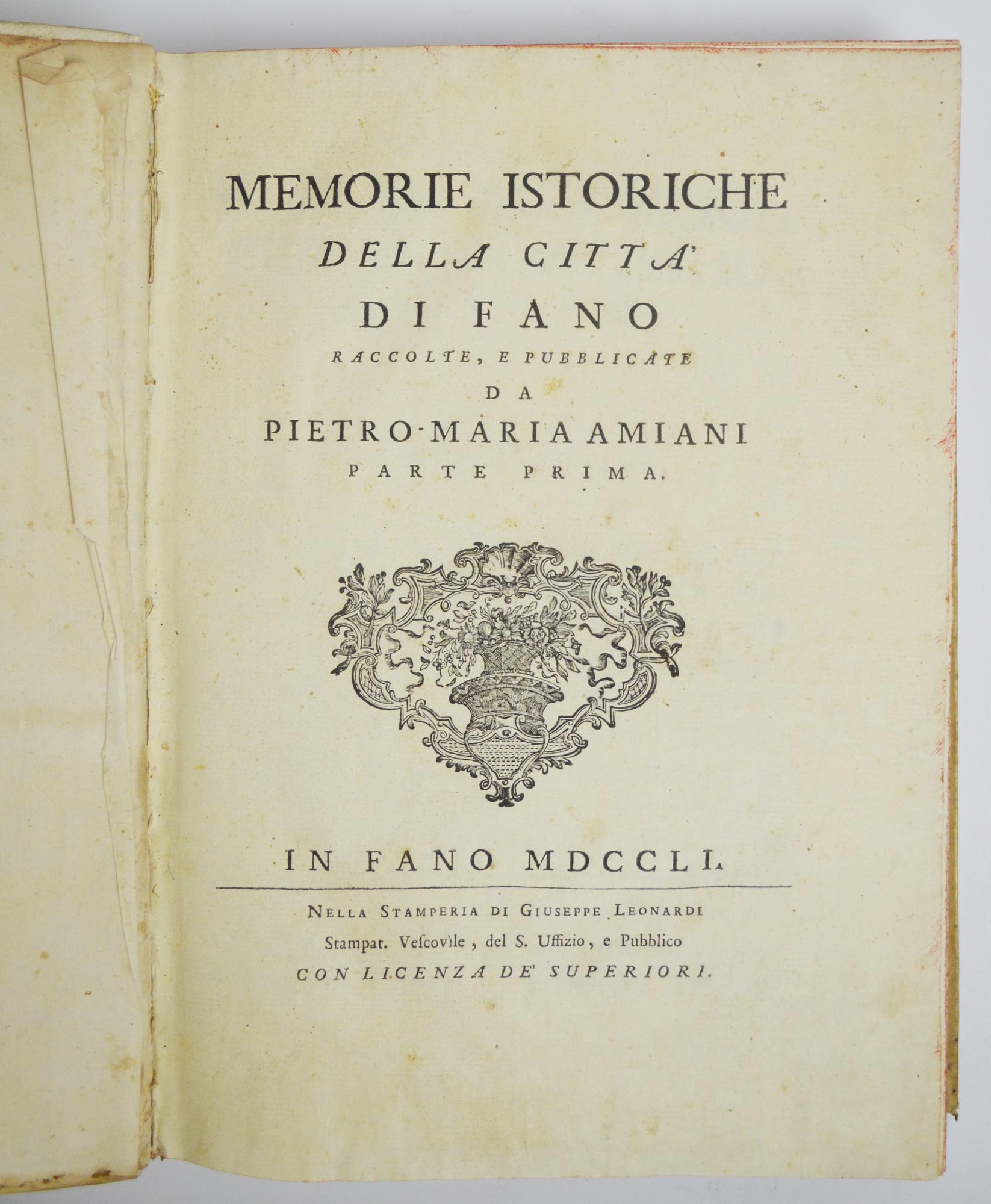Pietro Maria Amiani MEMORIE ISTORICHE DELLA CITTA' DI FANO In Fano, Giuseppe...