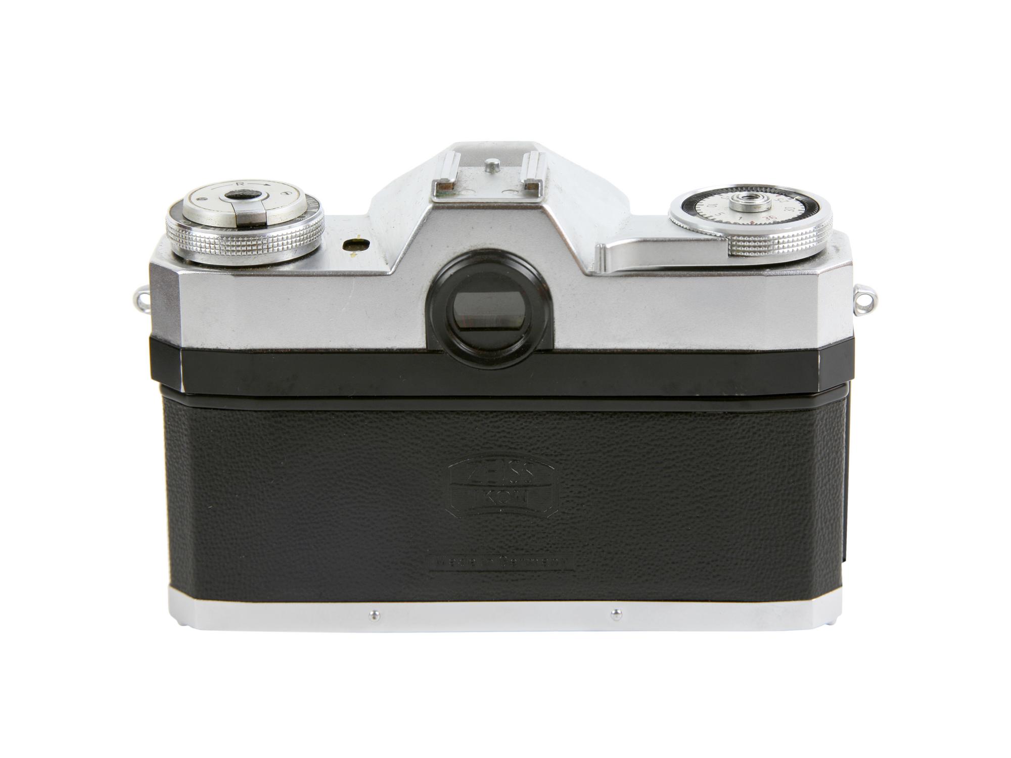 Prodotta dal 1959 al 1963, la Zeiss Ikon Super è una SLR formato 35 mm. Questa è dotata di ottica Carl Zeiss Tessar 50 mm f. 2.8 (attacco a baionetta Contaflex) con matricola n°2966620. Complessivamente in buone condizioni, con qualche segno di utilizzo. Completa di custodia in cuoio originale. Non testata. Possibili malfunzionamenti e/o parti mancanti.