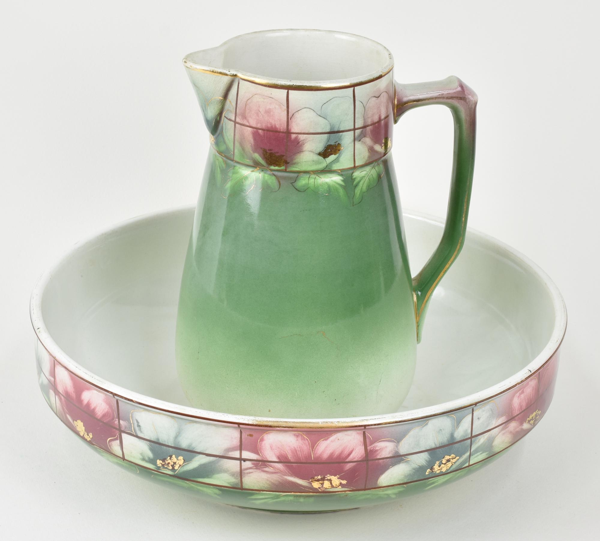 BROCCA CON CATINO IN CERAMICA marca S.C. Richard Italia, fine XIX secolo h cm...