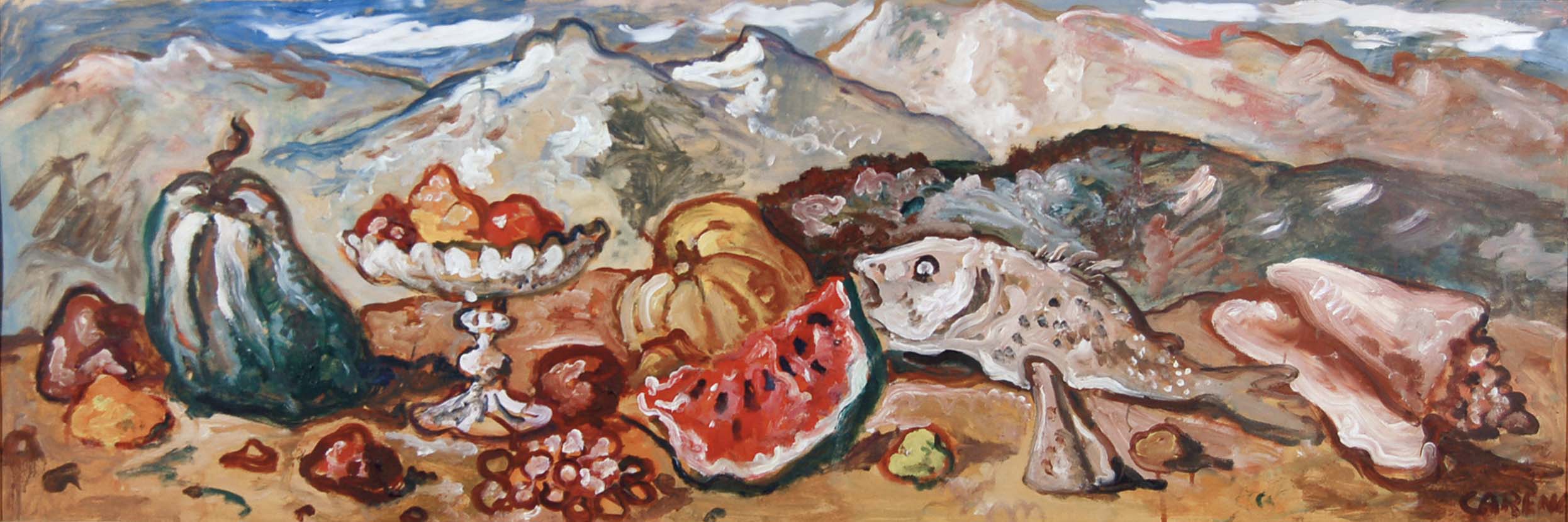 CARENA FELICE Cumiana (To) 1879 - Venezia 1966 Trionfo con frutti di terra e...