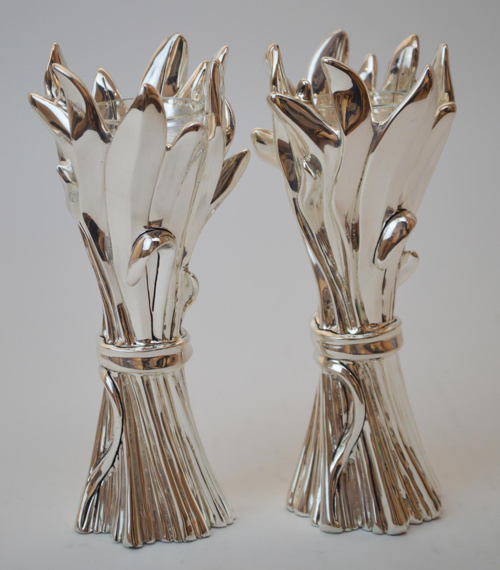 COPPIA DI CANDELIERI IN METALLO ARGENTATO h cm 17