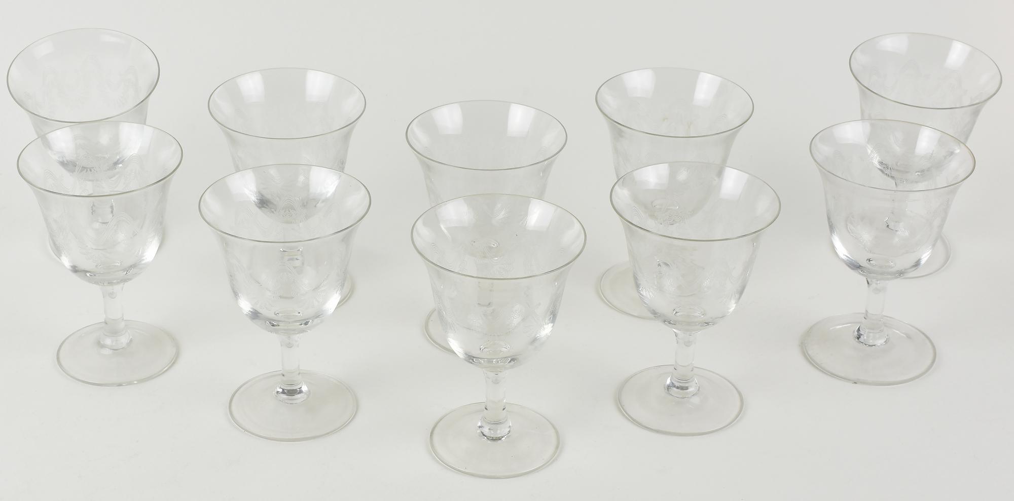 LOTTO DI 10 BICCHIERI DA VINO in vetro con decorazione incisa a motivi...