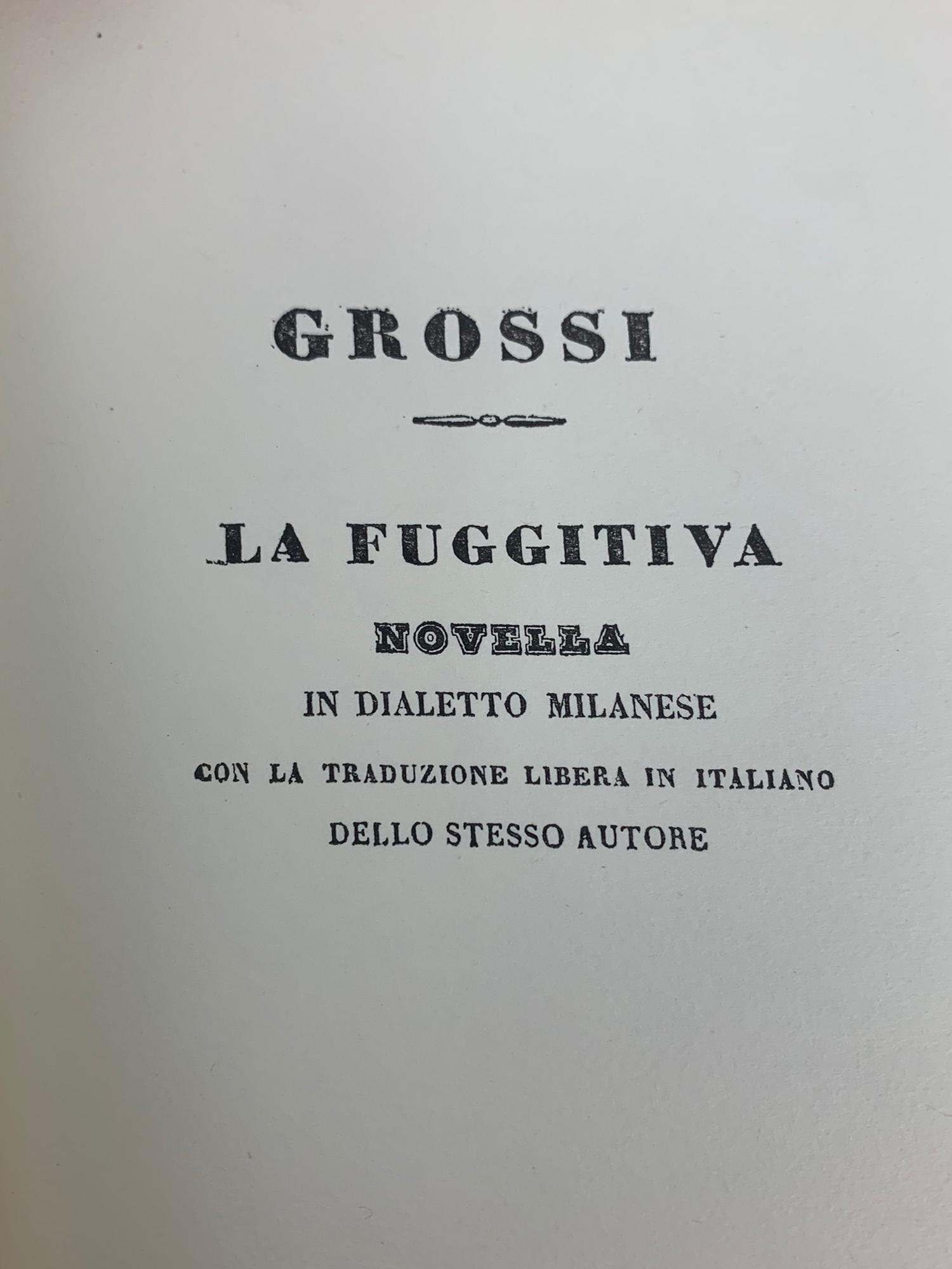 LA FUGGITIVA - NOVELLA IN DIALETTO MILANESE Tommaso Grossi Copia anastatica...