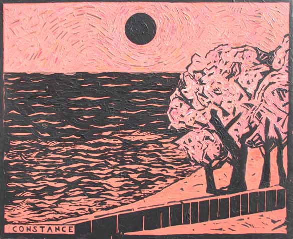 Aldo MONDINO Torino 1938 - Torino 2005 Constance, 1981 Olio su tela cm 120 X 150 Autentica dell’artista su fotografia Titolo ‘Constance’ (in basso a sinistra) Titolo, firma, data ‘Constance – Le lac – Le Printemps, Mondino, 81’ (al retro)