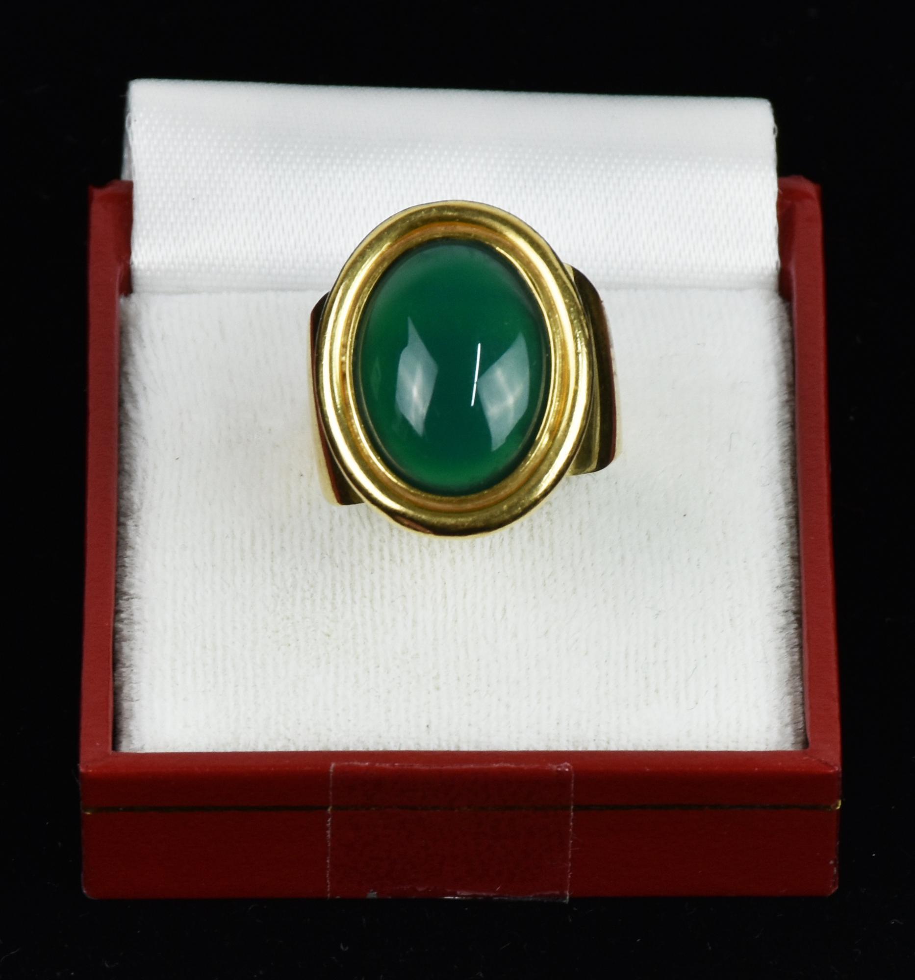 ANELLO IN ORO GIALLO modello a fascia con nefrite di taglio ovale mis 14 peso...