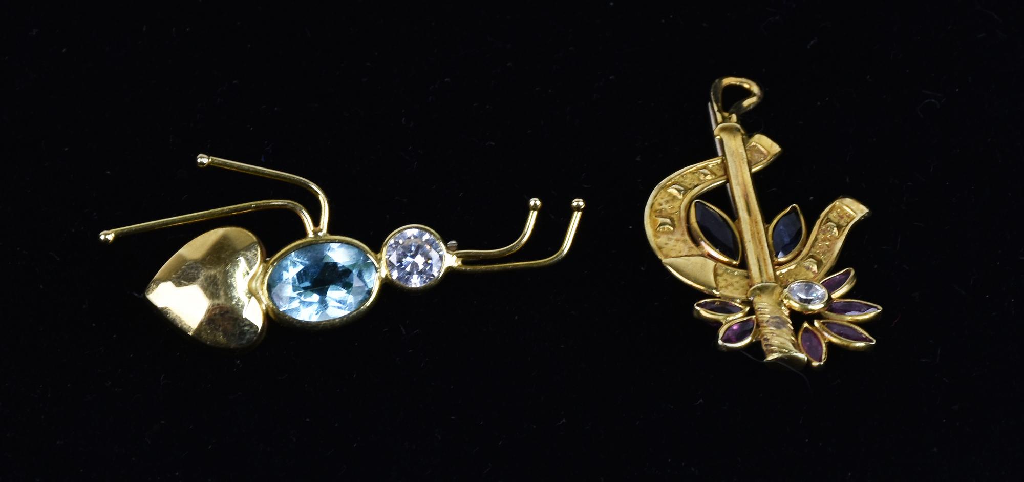 COPPIA DI SPILLE IN ORO GIALLO con zirconie cubiche e pietre semipreziose...