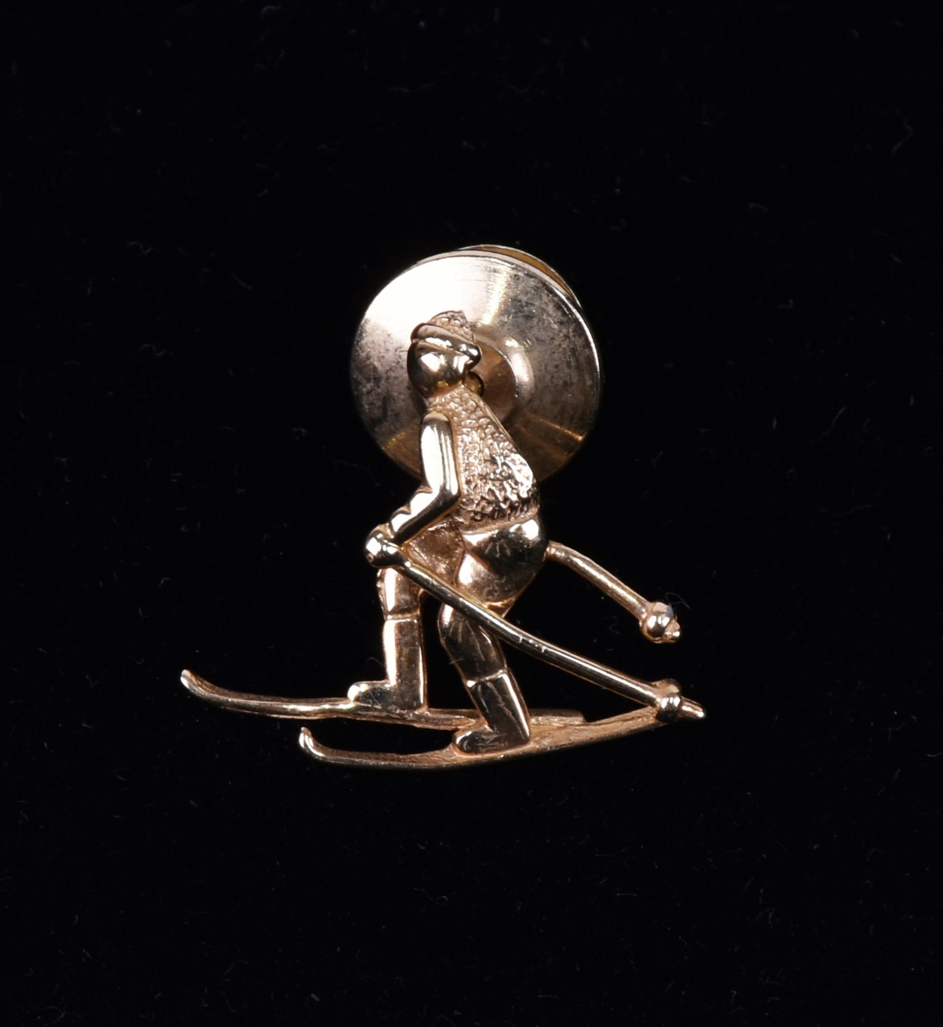 SPILLA IN ORO GIALLO raffigurante sciatore g 3,3 IL PRESENTE LOTTO E'...