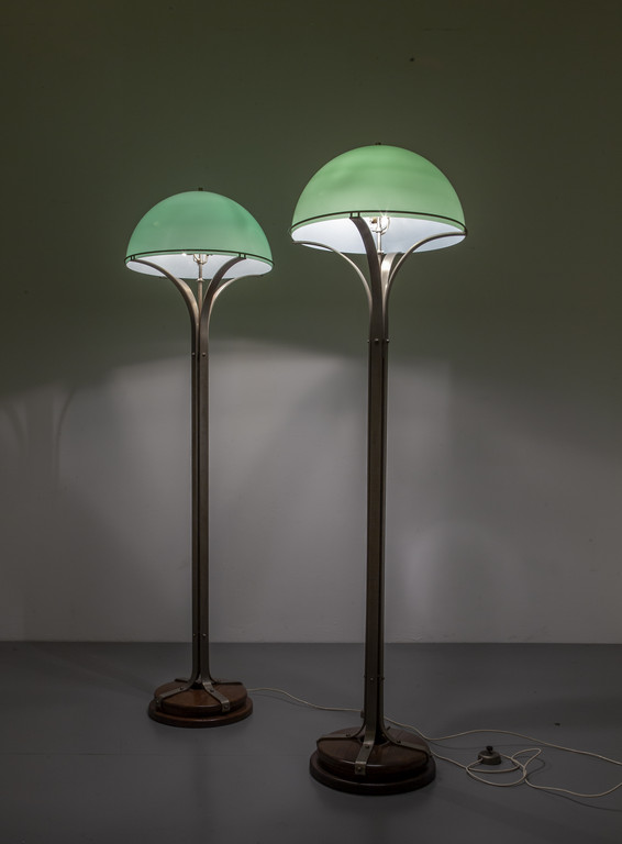 DUE LAMPADE DA TERRA, anni '60. <br>Legno di noce