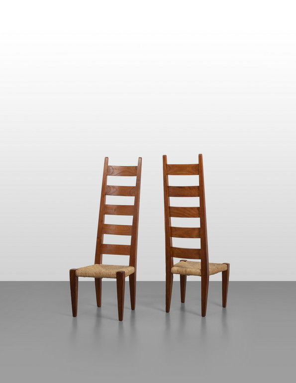 DUE SEDIE DA CAMINO, anni '60. <br>Legno di