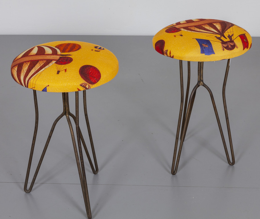 DUE SGABELLI, anni '60. <br>Ottone tubolare,