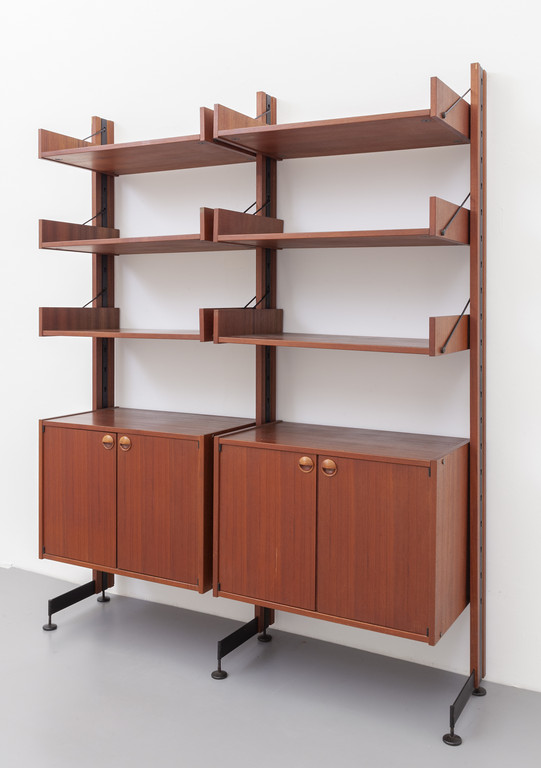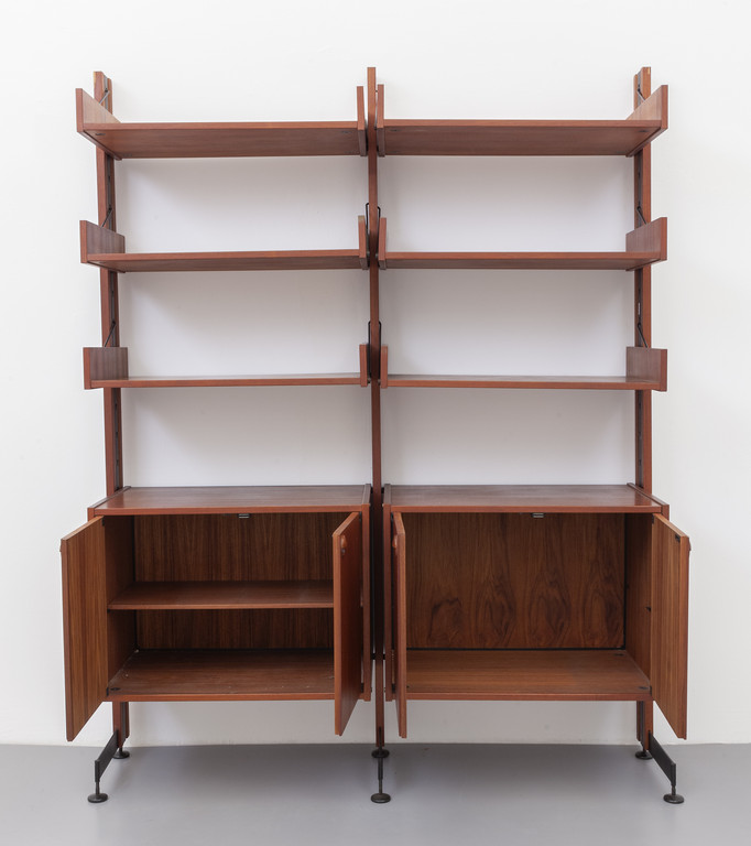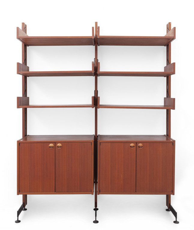 UNA LIBRERIA, anni '60. <br>Legno impiallacciato