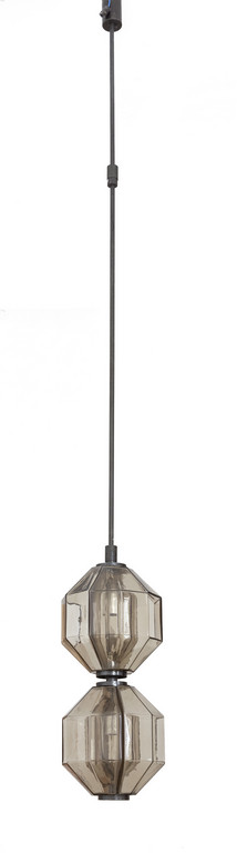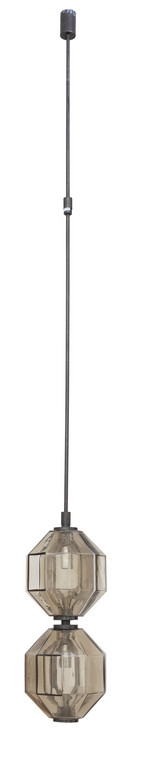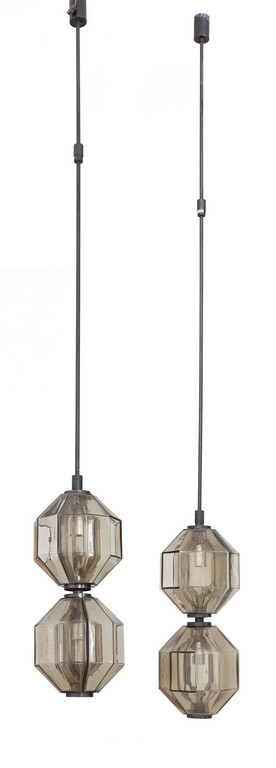 DUE LAMPIONI, anni '60. <br>Ottone ossidato canna