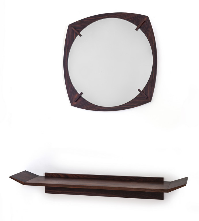 Legno impiallacciato in palissandro, cristallo argentato.