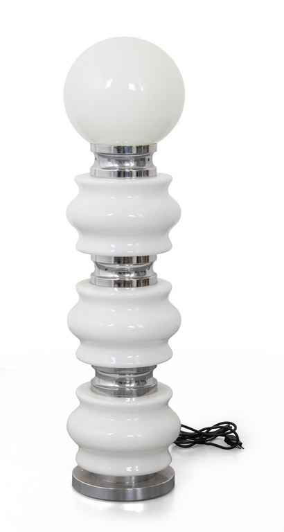 Acciaio cromato, vetro opalino.