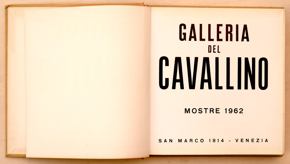 Raccolta di cataloghi originali, rilegati editorialmente, pubblicati in occasione delle mostre allestite presso la Galleria del Cavallino, Venezia, dal 10 Gennaio 1962 al 7 Gennaio 1963 (dalla 516a alla 546a Mostra)