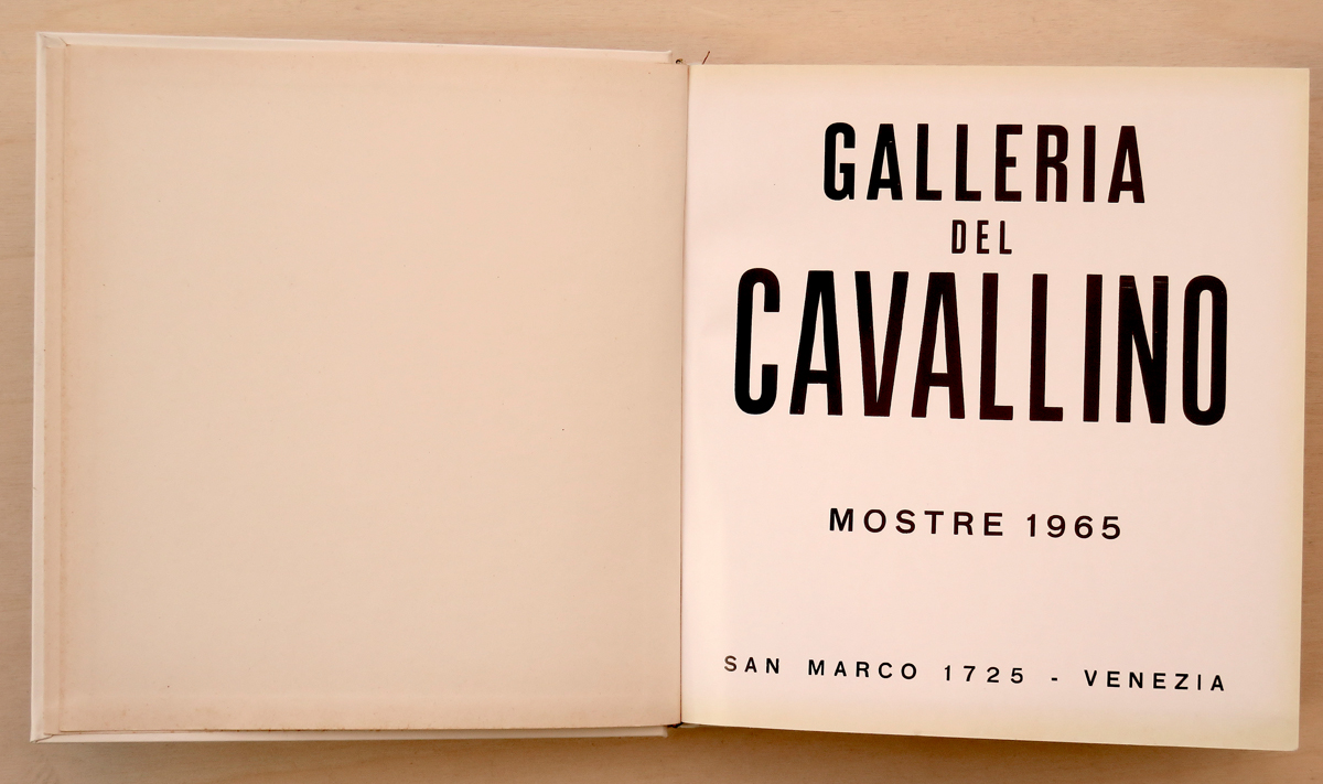 Raccolta di cataloghi originali, rilegati editorialmente, pubblicati in occasione delle mostre allestite presso la Galleria del Cavallino, Venezia, dall'11 Gennaio 1965 al 7 Gennaio 1966 (dalla 607a alla 635a Mostra)
