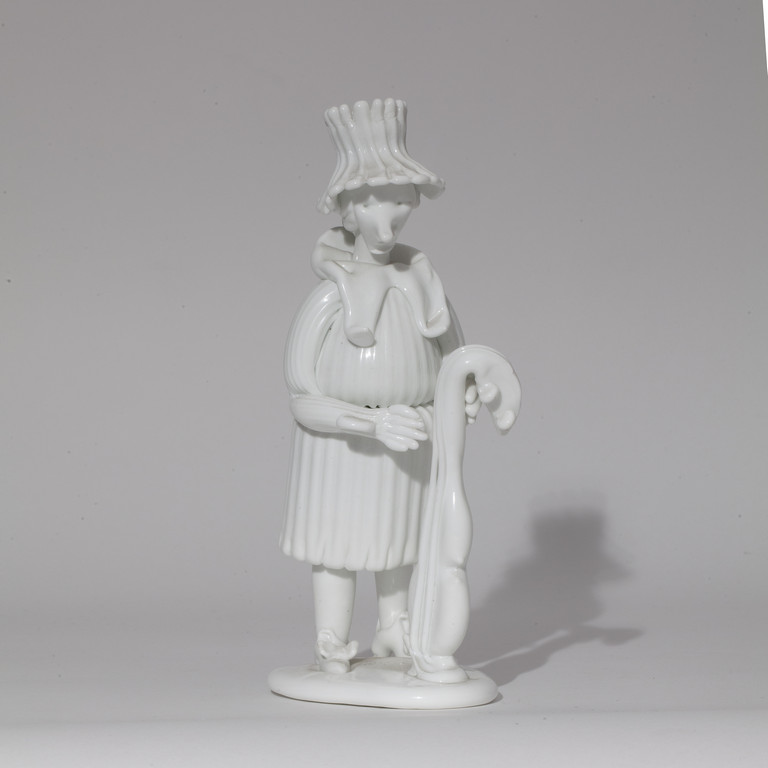Una figura della serie 'Grotteschi' di musicante con violoncello in vetro lattimo mod. '4855' 1957.