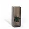 Un vaso in vetro fumè a sezione quadrata con applicazione a caldo di quadrifoglio in vetro verde circa 1970.