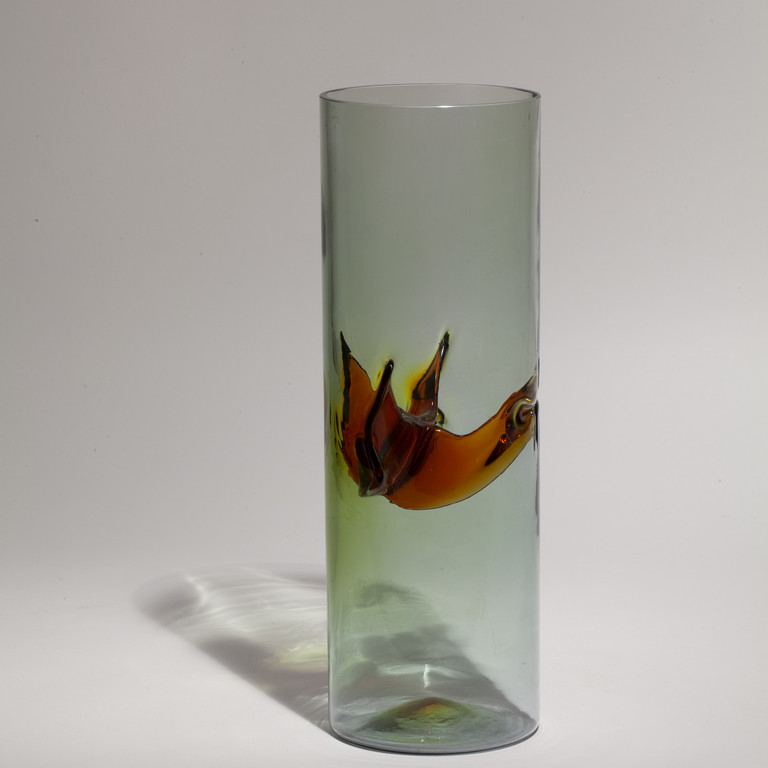 Un vaso in vetro verdino con membrana autunno circa 1975.