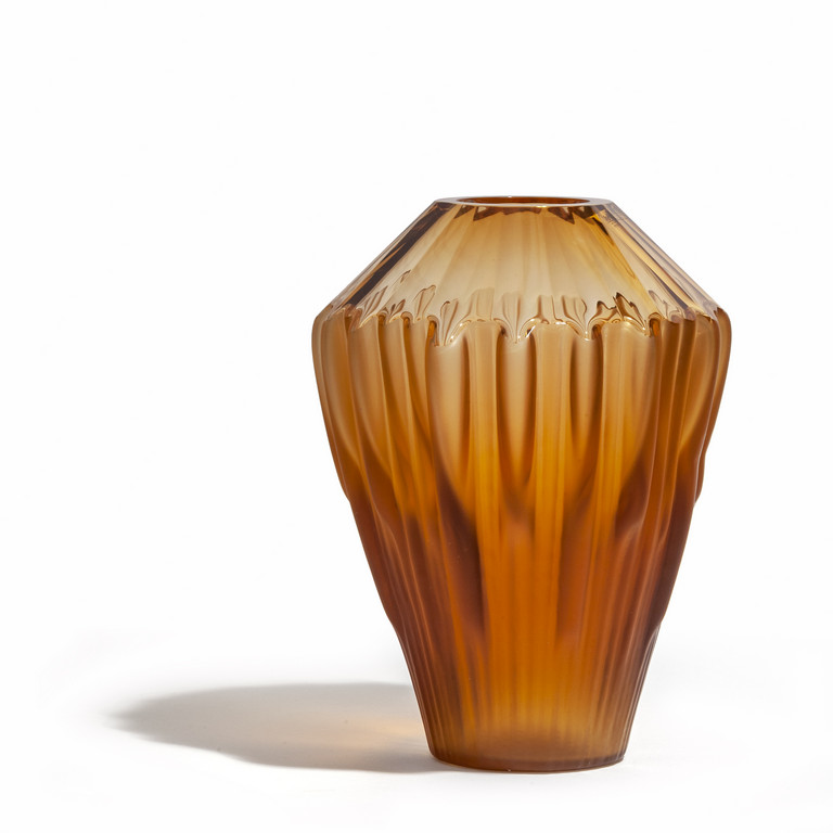 Un vaso 'Corteccia' in vetro ambra satinato molato 1983.