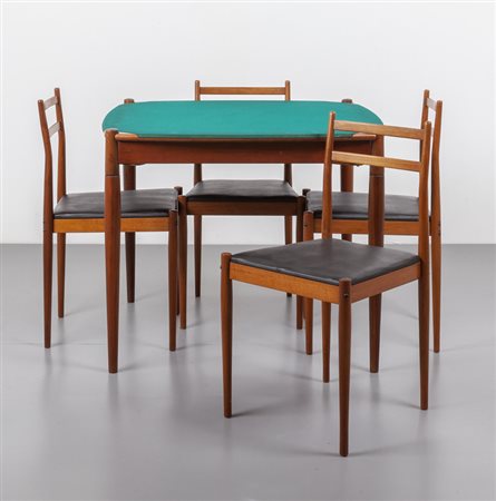 A 'Club' card table with four chairs manufactured by FRATELLI REGUITTI 1958