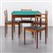 Table (teak wood reversible top in teak veneer and covered in green cloth and manufacturer's impressed mark)): 29.5 (h) x 35.4 x 35.4;