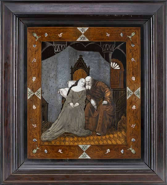 Intarsiatore del secolo XIX "San Francesco e Santa Chiara in un interno" compos