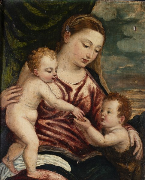 Scuola veneta del secolo XVI Madonna con Bambino e San Giovannino Olio su tavo