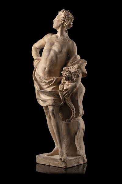 "Bacchus" terracotta sculpture. Initialled "DC". Bologna, 17th century (h. cm 35) (losses and minor restorations)
