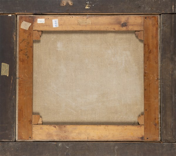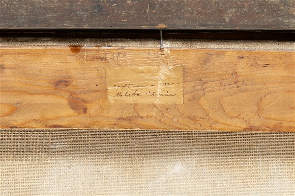 Etichette al verso relative alla provenienza "apartene a ... / Malerba ...doria"