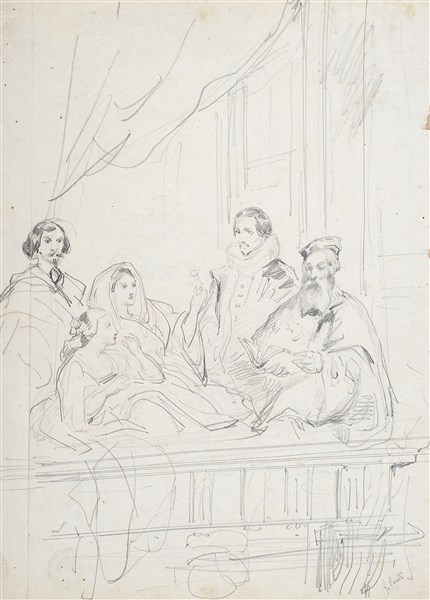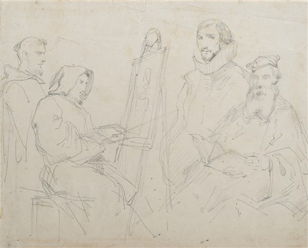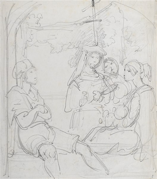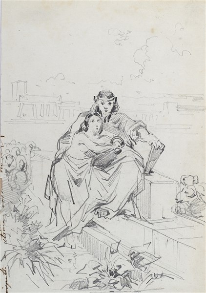 Gonsalvo Carelli Scene con figure Sette disegni a matita su carta controfondata,