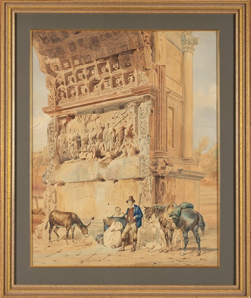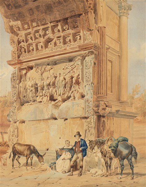 Giuseppe Costantini Figure presso l'Arco di Tito Acquerelli su carta, cm 59x46 c