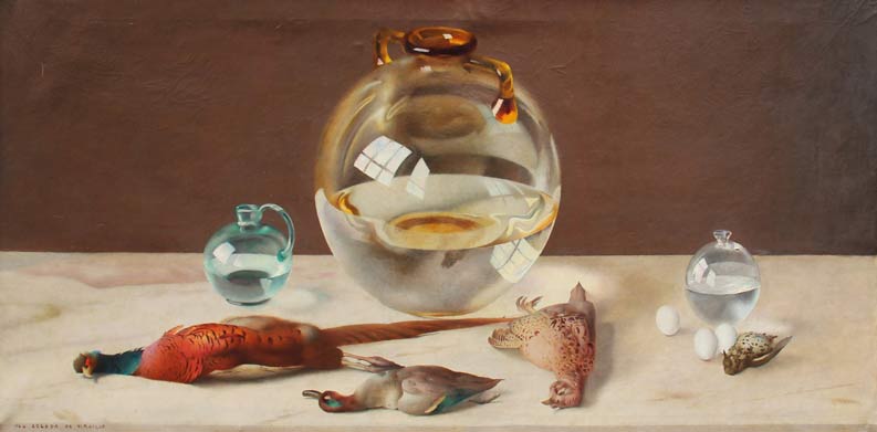 Ugo CELADA DA VIRGILIO Cerese 1895 - Varese 1995 Natura morta, anni 30 Olio su tela cm 80 X 170 Firma ‘Ugo Celada Da Virgilio’ (in basso a sinistra)