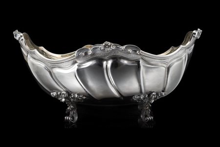 A silver centerpiece with vermeille interior. Apparently without hallmarks (cm 33x15.5x24.5 cm) (g 1050)
