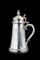 Boccale da birra in argento a corpo liscio inciso con stemma sormontato da elmo e volute fogliate. Presa in forma di fiore, ansa mossa. Titolo 925 (h. cm 26) (g 1040)