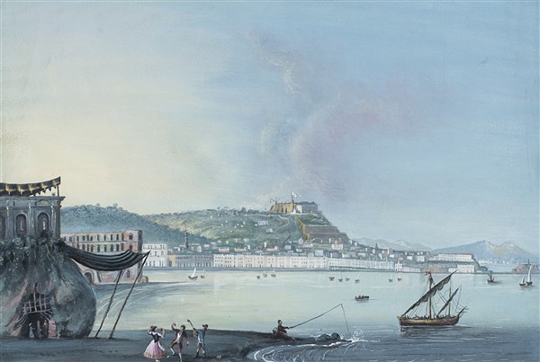19th century school "View of Naples from Posillipo with Palazzo donn'Anna and Castel Sant'Elmo in the background" gouache (defects)
