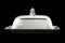 Burriera in argento con bordo decorato a motivi stilizzati e presa del coperchi