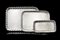 A group of three rectangular silver trays. Titled 800 (g 2700)