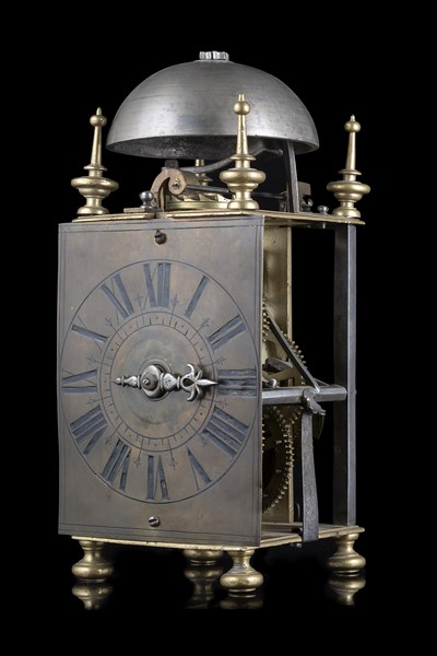ANONIMO Orologio a "lanterna" in ottone con pinnacoli e montanti in ferro. Quad